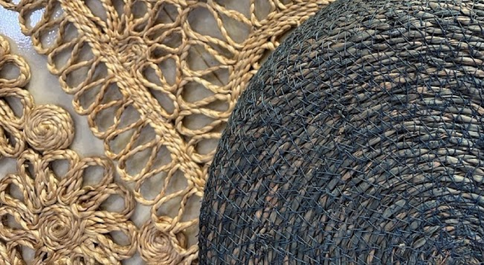 A collection of jute runners, placemats and coasters in different designs and colors. Jute is a natural materials form a renewable source and can actually be composted after the product has completed its lifecycle.