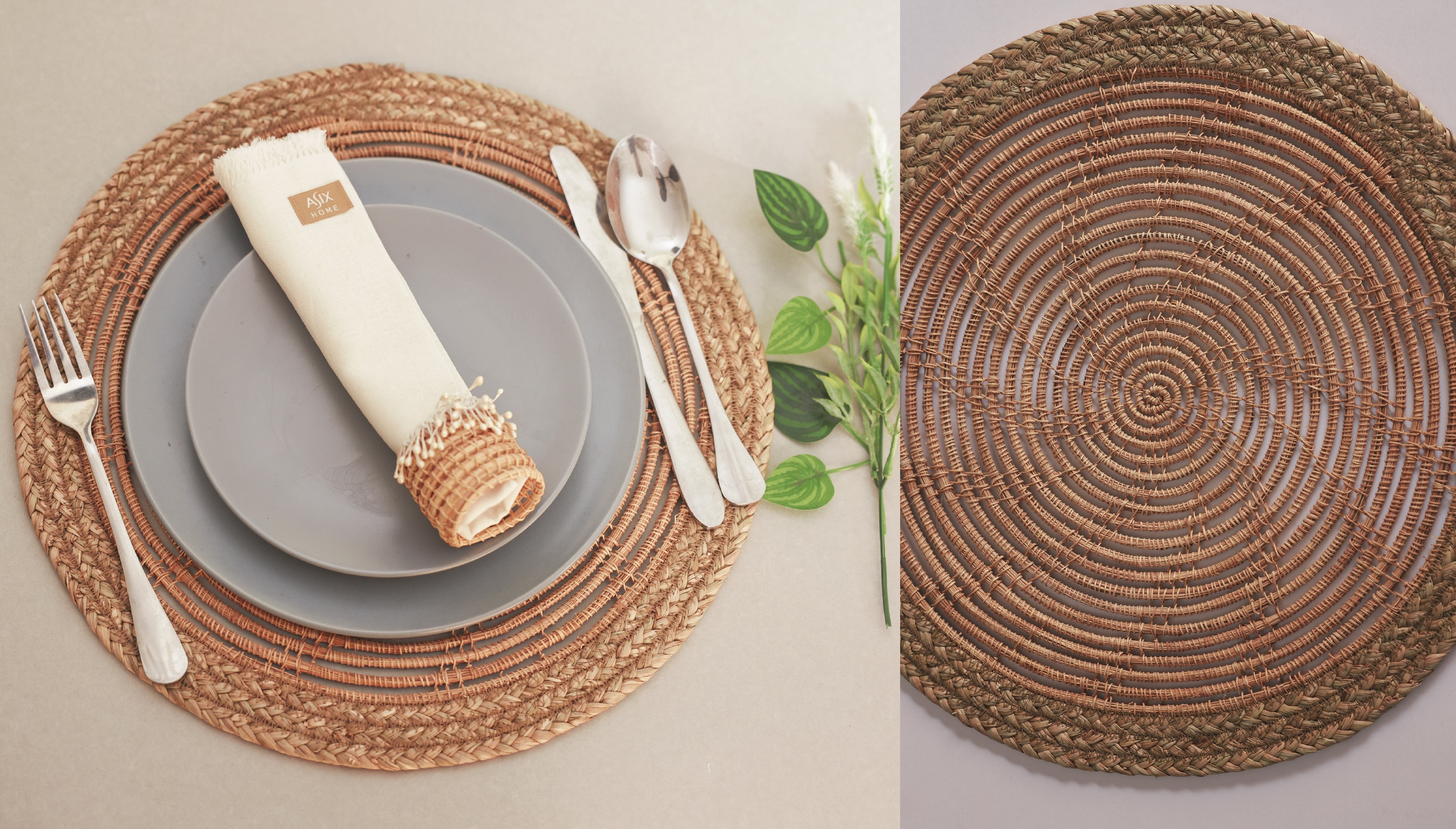 Asix is a sourcing gateway to Bangladesh, providing a diverse range of materials and techniques. Our production team consists of 95% female workers and artisans, usually from marginal areas. Asix makes its products from 5 production hubs located in Satkhira, Naogaon, Shatkania, Bandarban, and Bogra. In these hubs, female artisans make products such as macrame, braids, jute thread processing, natural dyeing, embroidery, etc. Some semi-finished products are brought to units located in Dhaka where they are further reworked. Engaging these women artisans at different layers of the production process creates an economic opportunity for additional sources of income that ultimately contribute to improving their state of living. Using these natural fibers, Asix mainly produces table mats, types of baskets, dining accessories, bags, etc.