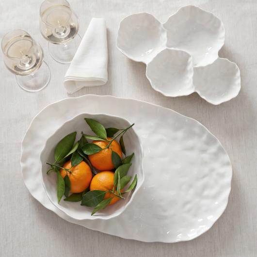 Simplicity meets subtle texture in this all-white collection, where gently waved surfaces add depth to clean, refined silhouettes. A modern classic that complements every occasion. Microwave safe, dishwasher safe, freezer to oven to table, tarnish free, and stain resistant.