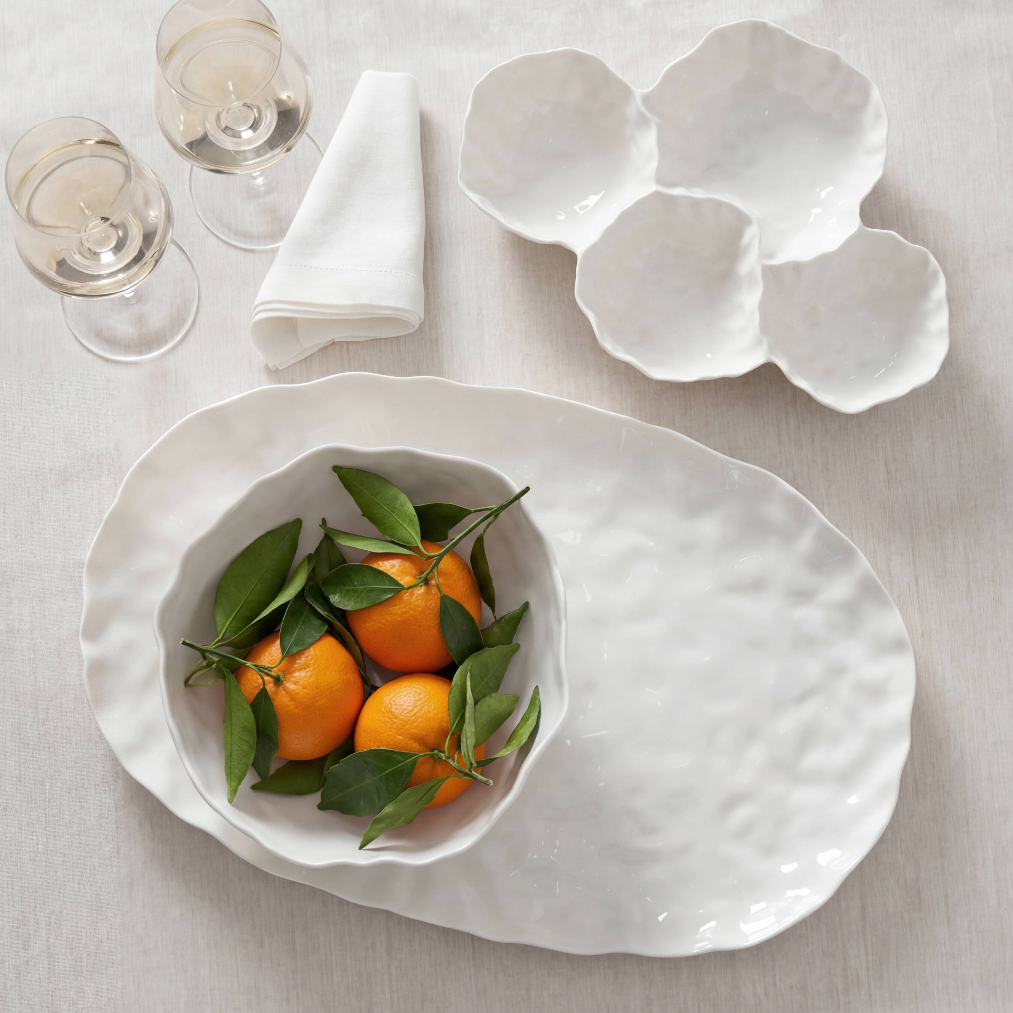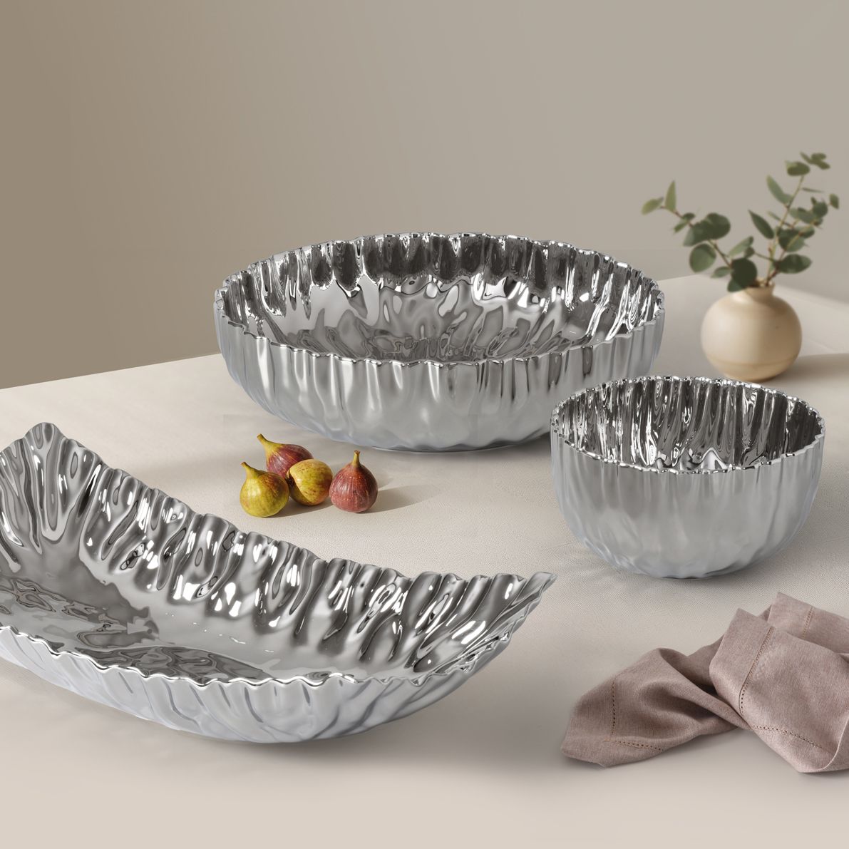 Add a touch of elegance to your everyday. With smooth contours and a luminous silver accent, these porcelain pieces blend beauty and sophistication effortlessly to any setting. Dishwasher safe, freezer to oven to table, tarnish free, and stain resistant.