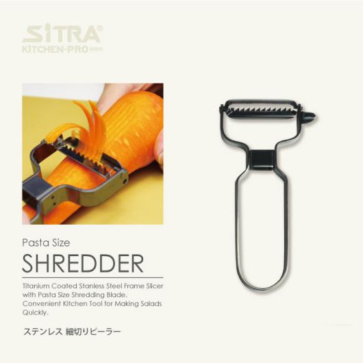 Titanium Coated Stanless Steel Frame Slicer with Pasta Size Shredding Blade.