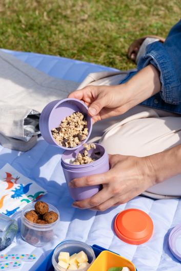 This lunchbox from Amuse is made of 100% recycled plastic from its own production facility. Due to variables in the waste, the colour is a different kind of grey each time (can also tend towards blue). It's 100% certified and food-safe, BPA free! We also found the most sustainable solution for the elastic, which is made from recycled denim jeans. You are definitely contributing your bit to a better world with this impact-reducing lunchbox!