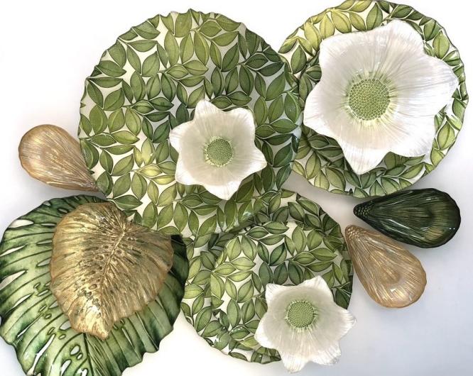 Gifts, Decorated glassware, Glass, Vase, tableware, brilliant, plates, Charger plates, Salad plates.