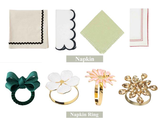 Elevate your table setting with our premium napkins paired with finely crafted napkin rings. Designed to blend style and functionality, they add a touch of elegance to every dining experience.