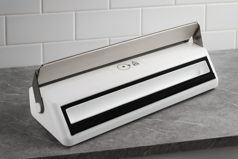 The T-12 is Tre Spade’s compact, fully automatic vacuum sealer with a clean, essential design. Ideal for home kitchens, campers, or boats, it runs on 12 V, consumes very little energy, and is designed to offer strong vacuum performance (up to 700 mbar) in a refined and minimalist style. The brushed stainless steel lid adds a modern, professional touch, while its compact size and built-in transformer compartment make it easy to store anywhere.