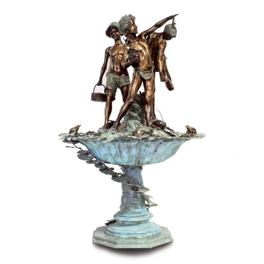 A monumental fountain that recalls the typical icons of 20th-century Neapolitan sculpture. Gemito's echo is not far away and "his" pescatorielli take off as the protagonists of the one-and-a-half-meter basin enriched with frogs and water lilies that make this sculpture bucolic and naturalistic, a symbol of artisitic workmanship and made in Italy.