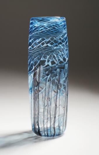 Die Vase wird von zwei Glasmachern in mehrfach optischen Vorformprozessen und dem Einarbeiten verschiedenster Applikationsformen auf einem in winterlichem Blauton angehauchten Grundglas gefertigt. Darauf finden sich charakteristische Elemente aus den Naturbildern der "Frostnacht", wie zartes Geäst in Form von sog. "Murrini", die auf venezianische Herstellungstechniken verweisen. Nach dem erneuten Überfangen mit Kristallglas werden die formgegenden Schritte bis zum ausgearbeiteten Rand ausgeführt, der abschließend, nach dem Prozess des Umheftens, entsteht.