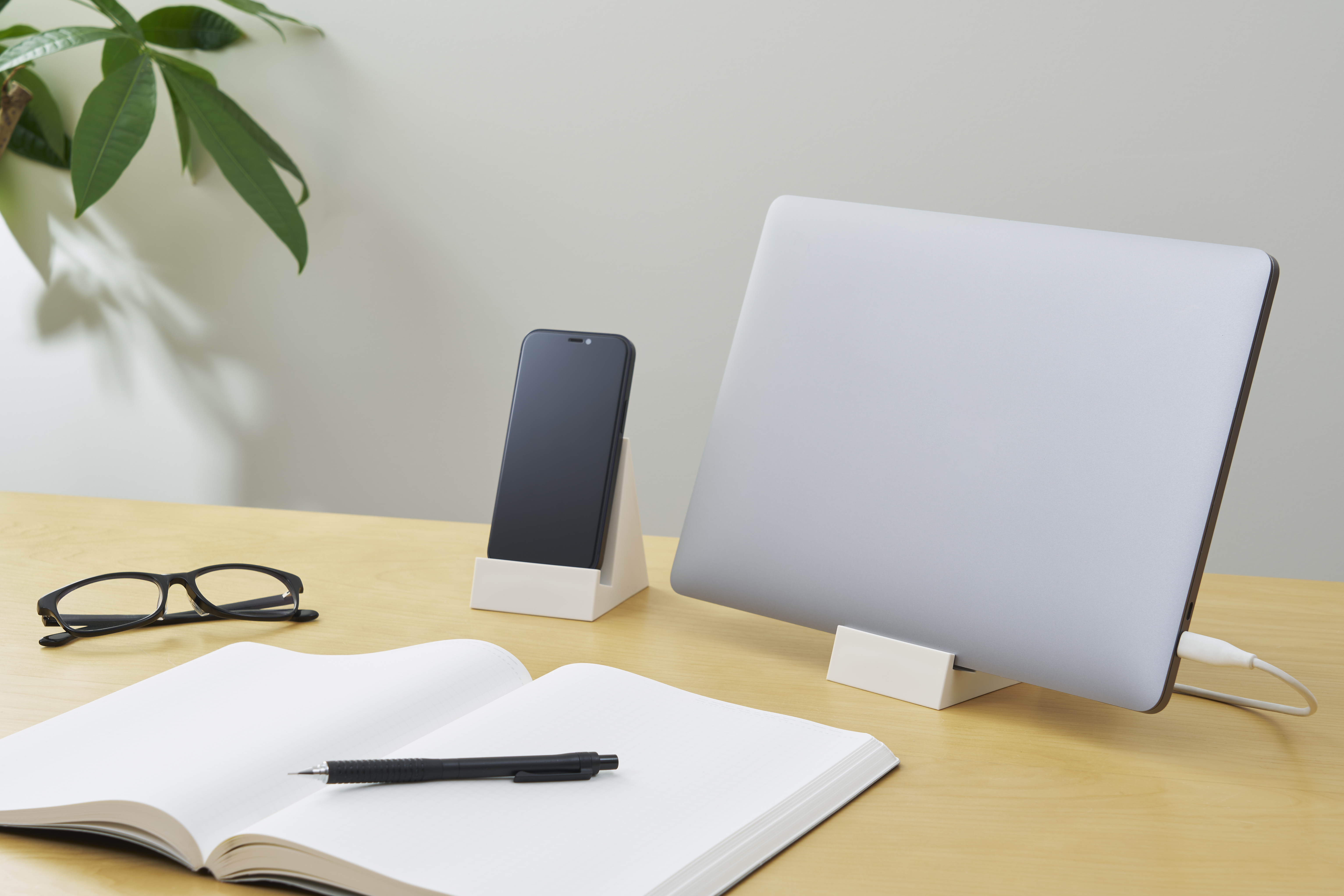 Tablets, which tend to take up a lot of space, can be stored upright to make efficient use of space. The soft material will not damage the tablet or the table. Also for smartphones and laptops.