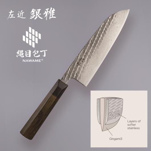 SAKON GINGA, “Nawame” Damask stainless clad knives