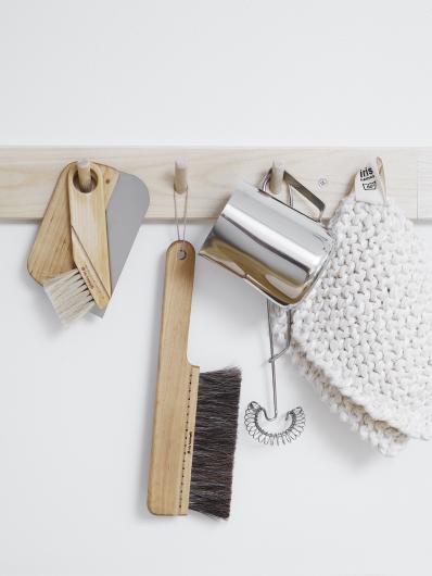 Rack with 7 hooks in untreated birch wood. Fits the kitchen, hall and bathroom. The distance between the hooks is the same as the distance between the hooks when multiple hook boards are assembled, which allows it to be built to the desired length.