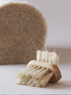 Our design has evolved through the years but the craftsmen still use the same time honoring techniques used for over a hundred years. The brushes are made by hand in mostly natural materials. Bundles of horsehair. Small nail brush that has not yet been cut.