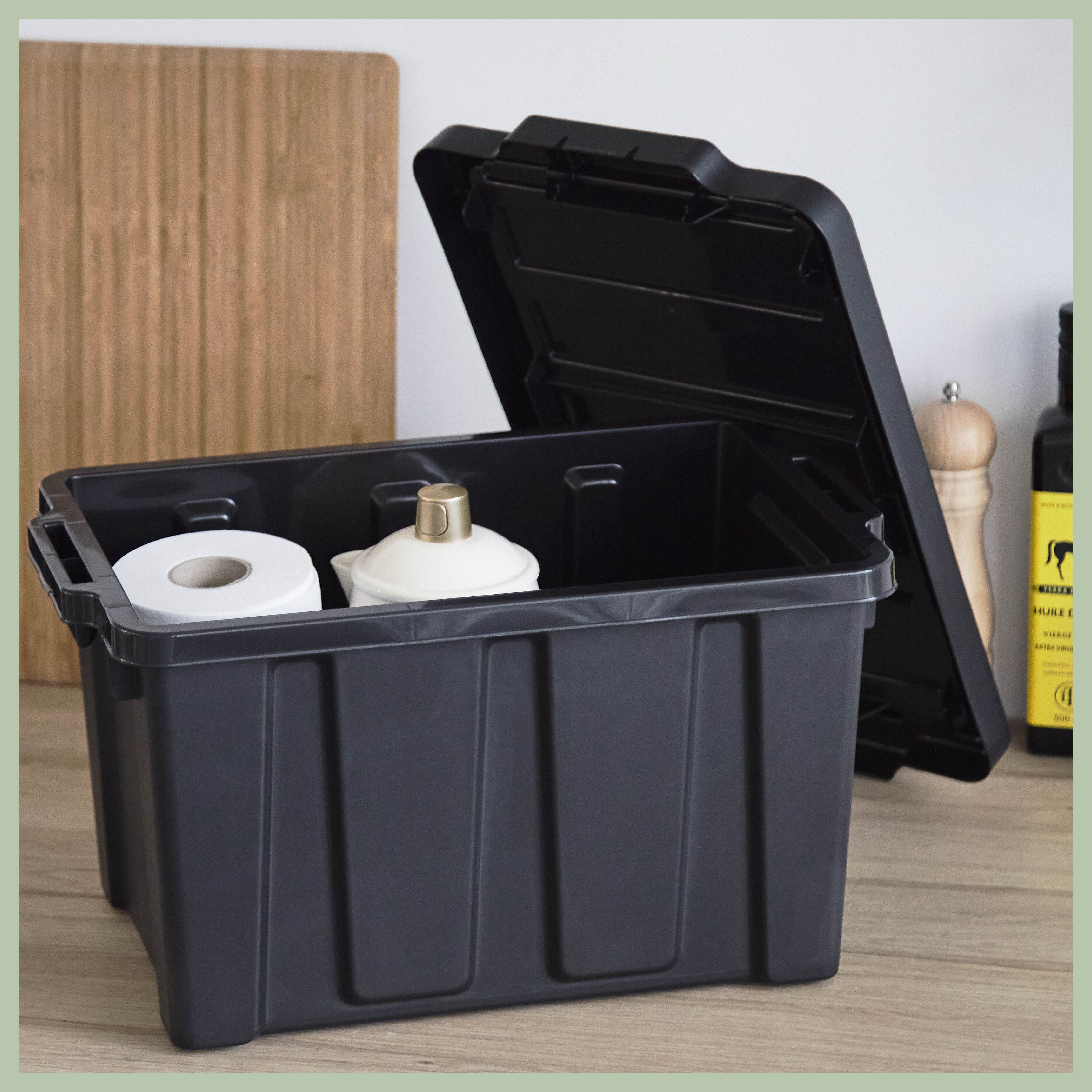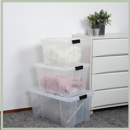 Die Aufbewahrungsboxen der Handybox-Serie von IRIS Ohyama haben ein stabiles Design. Die Box ist nestbar und mit Hilfe des Deckels stapelbar. Das transparente Material aus 100% recyceltem Material macht es einfach, den Inhalt zu identifizieren. Der Deckel der Aufbewahrungsbox hat funktionelle, bequeme Griffe und der Verschlussclip sorgt für einen sicheren Verschluss. Außerdem kann Platz gespart werden, da die Aufbewahrungsboxen ineinander gestapelt werden können, wenn sie nicht in Gebrauch sind. Mit der Handybox-Serie können Sie alle Haushaltsgegenstände wie Spielzeug, Schuhe, Kleidung und andere Accessoires aufbewahren. Die Aufbewahrungsboxen können unter anderem im Wohnzimmer, Schlafzimmer, in der Küche, im Badezimmer, in der Garage und im Büro verwendet werden.