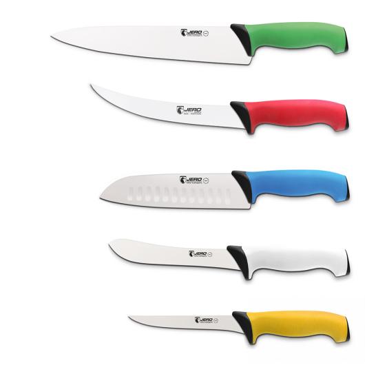 TR Handle The differentiated coloured handle system allows the professional in the different areas of food and ingredient preparation to distinguish each knife to each purpose, avoiding flavors contamination between products. A soft rubber material on the surface allows a very good grip in every condition. Structurally strong to endure an intensive use, due to the harder inner plastic component, injected directly over the blade.