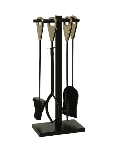 FIRE TOOLS SET INCLUDES POKER,BRUSH,SHOVEL AND TONGS ON A STAND