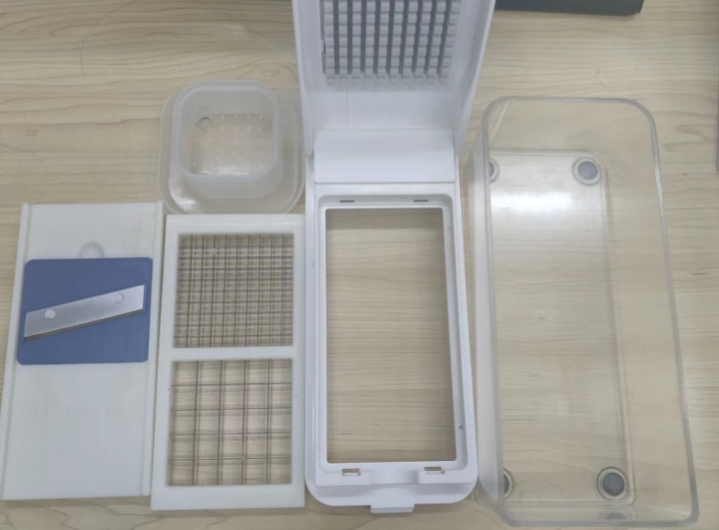 mirror TPE non-slip foot;silicone spring glue; mirror ABS movable pressure plate; ABS middle plate; PS storage box; ABS press; ABS cut thick strip cover; ABS tool rest bottom cover; tomato cut and cover;ABS planer support; PS large cutting; PS small cutting; PS planer edge; ABS flat blade frame; ABS trapezoidal blade frame; ABS wave blade outer frame; PP hand protector;PP hand protector; PP cleaning tablet; mirror translucent PP blade collection box; AL willow nail; 304 stainless steel mesons;