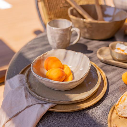 Nature’s simplicity on your table. Inspired by Alentejo’s landscapes, each piece brings rustic charm, earth-toned colors, and irregular edges—a celebration of countryside beauty.
