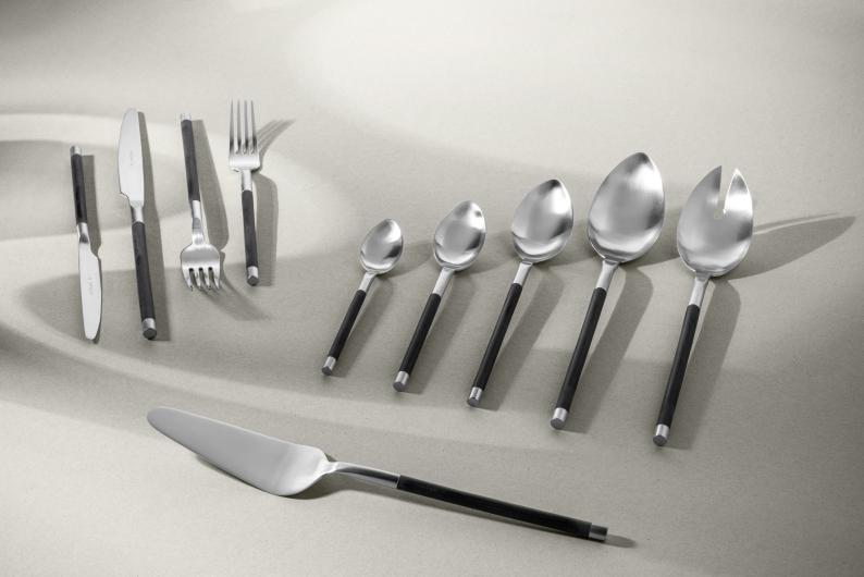 Produced in integral parts of 8 millimetres cylindrical stainless steel with an injection of POM (Poly Oxide of Methylene) in the handle of each item, it’s in the lightness and balance of the pieces that this model surprisingly presents the main element.