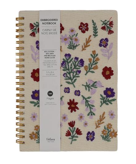 Embroidery Hard Cover Gold Spiral Bind Notebook A5,Cover Made From Linen Fabric, Contain 144 Pages