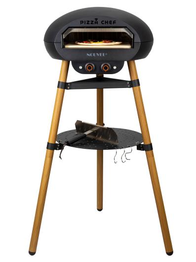Our freestanding electric pizza oven combines state-of-the-art technology with elegant aesthetics—thanks to its unique metal legs in an elegant wood look, it is a real eye-catcher in any kitchen, on the patio, or in the garden.