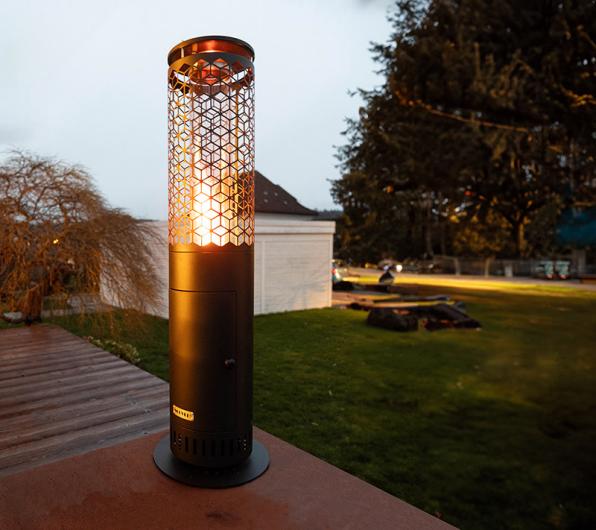 Experience natural warmth outdoors - our “Victoria” pellet heater for outdoor use!
