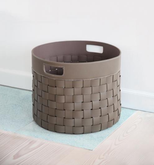 This beautiful braided basket in recycled leather, in Danish design is really good for storage.
