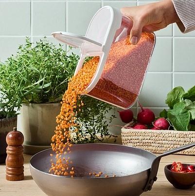 SmartStore™ Flip Dry food keepers are ideal to make optimal use of the space in the pantry or cabinet. Transparent and airtight containers help keep the contents fresh longer while keeping the space neat and organized. The products are made in Finland.