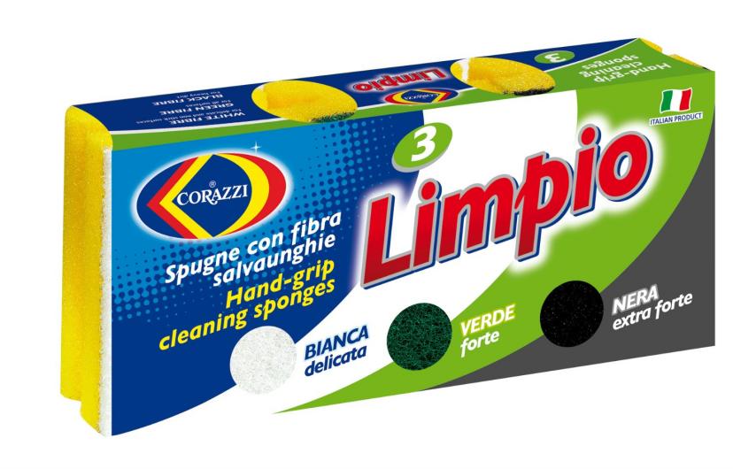 Grooved sponges with three kinds of fibres meeting any demand: green fibre for the daily cleaning, white fibre for delicate surfaces, black fibre particularly effective for the removal of the most stubborn dirt. The high thickness of the sponge as well as the side hand grip safeguard fingers and nails assuring enhanced comfort during cleaning operations.