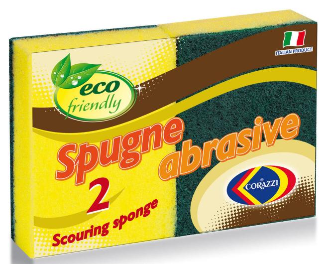 Scouring sponges eco and environmentally friendly suitable for the removal of stubborn dirt and the cleaning of kitchenware and household surfaces.