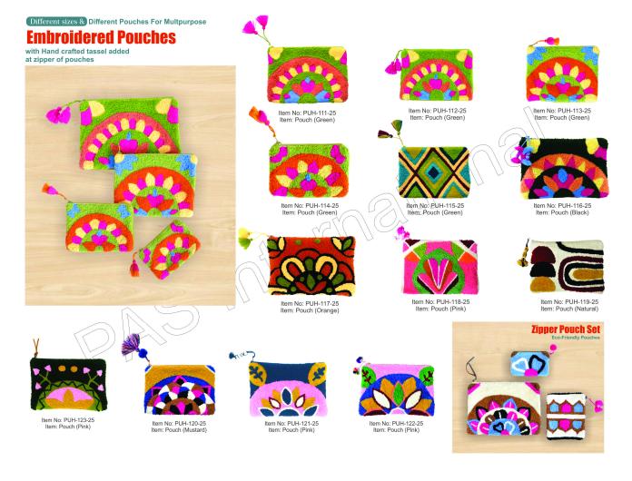 Handcrafted fashion pouches are more than stylish accessories; they serve as expressions of creativity and conscious living. Artisans devote special attention to each step, from selecting high-quality, sustainable materials like cotton, canvas, and jute, to hand-stitching and embellishing every piece with care. These pouches often feature distinctive embroidery, prints, or hand-painted designs, ensuring no two are identical, making each pouch a unique work of art. Some styles include kangaroo pouches, coin pouches, and makeup bags, often available in versatile shapes and sizes suitable for daily essentials or travel needs.