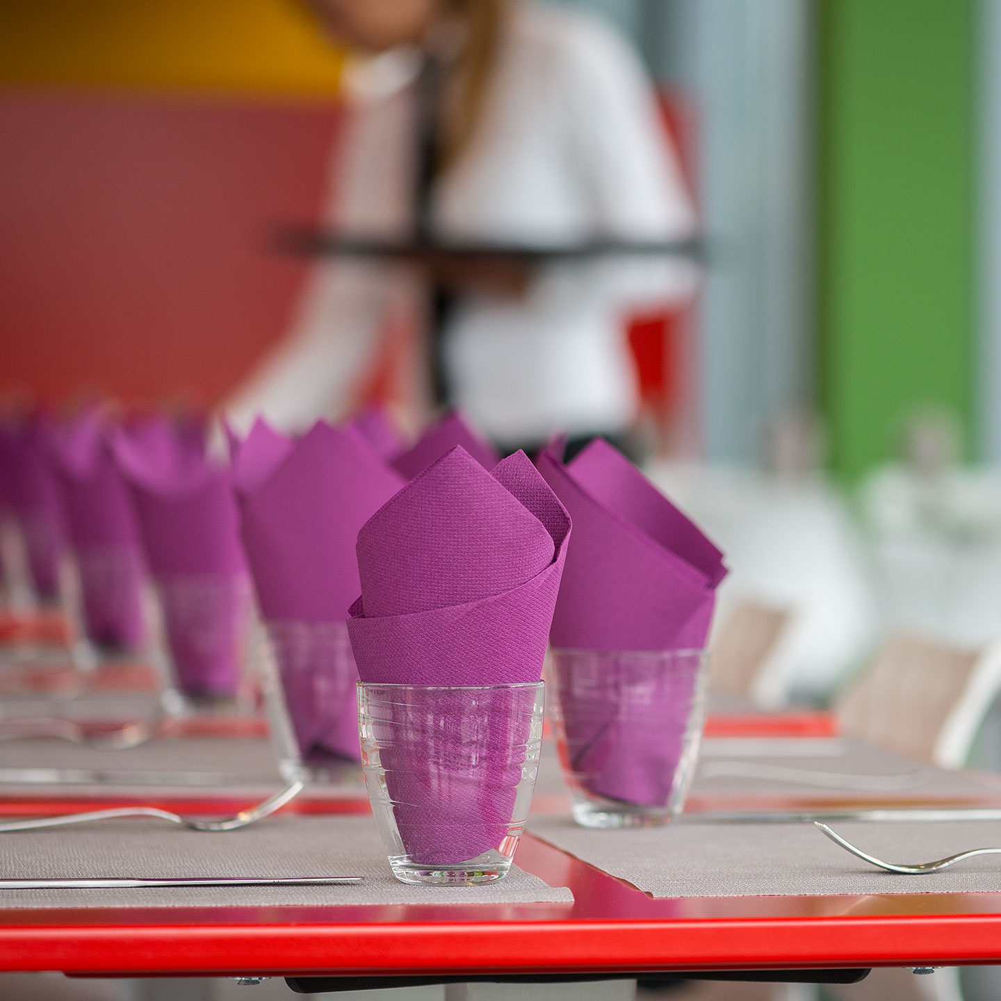 "NouveauTech" tablecloths by Paper Print Converting GmbH are reusable-yet disposable tablecloths with beautiful textile-like character - designed for hotels, restaurants, and catering businesses as well as Retail & Home.