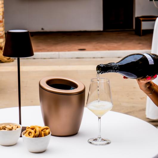 DEMI Wine and Champagne Cooler is the perfect wine bucket for every occasion! It is elegant and practical, available in a colorful range of different tones and combinations. It has a patented high performance cooling system: through the combination of polypropylene insulation with gel bags it can cool down the temperature of the wine and keeps it for long time. The practical DEMI Wine & Champagne cooler includes a set of 5 cooling gel bags, making it ideal for chilling drinks without the use of ice.