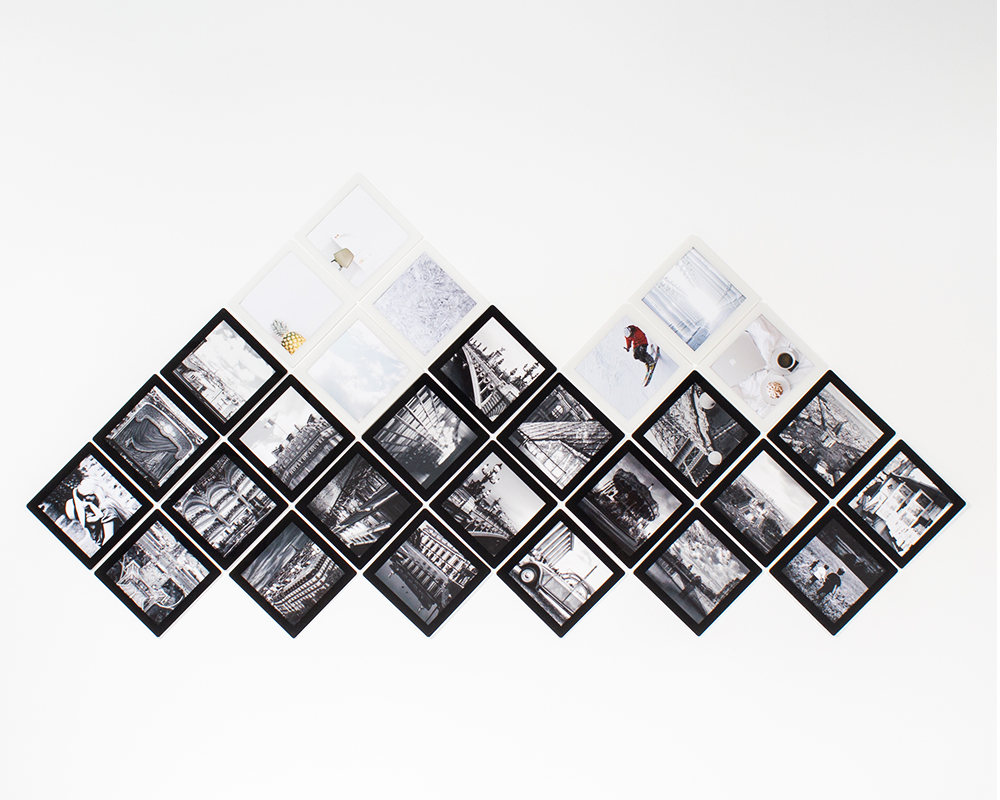 SlimPYX frames are unbreakable and very practical for posters in formats such as A3 or A2 (30x40 or 40x60 cm). Feel free to mix colours and formats to create your own wall compositions. Adding square frames and A6, A5, A4 (10x15, 15x20 and 20x30) frames in a symmetrical or unstructured arrangement will create superb universes.