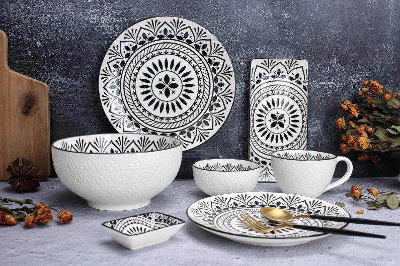 This tableware utilizes intricate pad printing techniques, infusing white porcelain with an exotic charm. Delicate patterns, such as flowers or geometric elements, make each piece visually striking, adding a unique artistic ambiance to dining occasions.