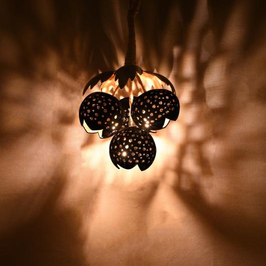 Add a touch of rustic elegance to your interiors with our handcrafted Coconut Shell 5 Balls Hanging Lights in Grapes Design. Inspired by the natural cluster of grapes, this unique lighting piece is made from carefully polished coconut shells, artistically arranged into five hanging globes that radiate soft, soothing light.