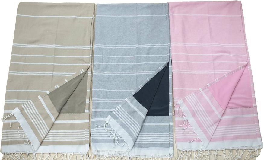 PAREO BEACH TOWEL IS A 2 LAYER TOWEL, BACK FABRIC IS MICROFIBER TERRY, WHICH IS VERY SOFT AND EASILY SOAKS WATER. THE COLORS AND SIZES CAN BE ARRANGED AS PER THE REQUIREMENT
