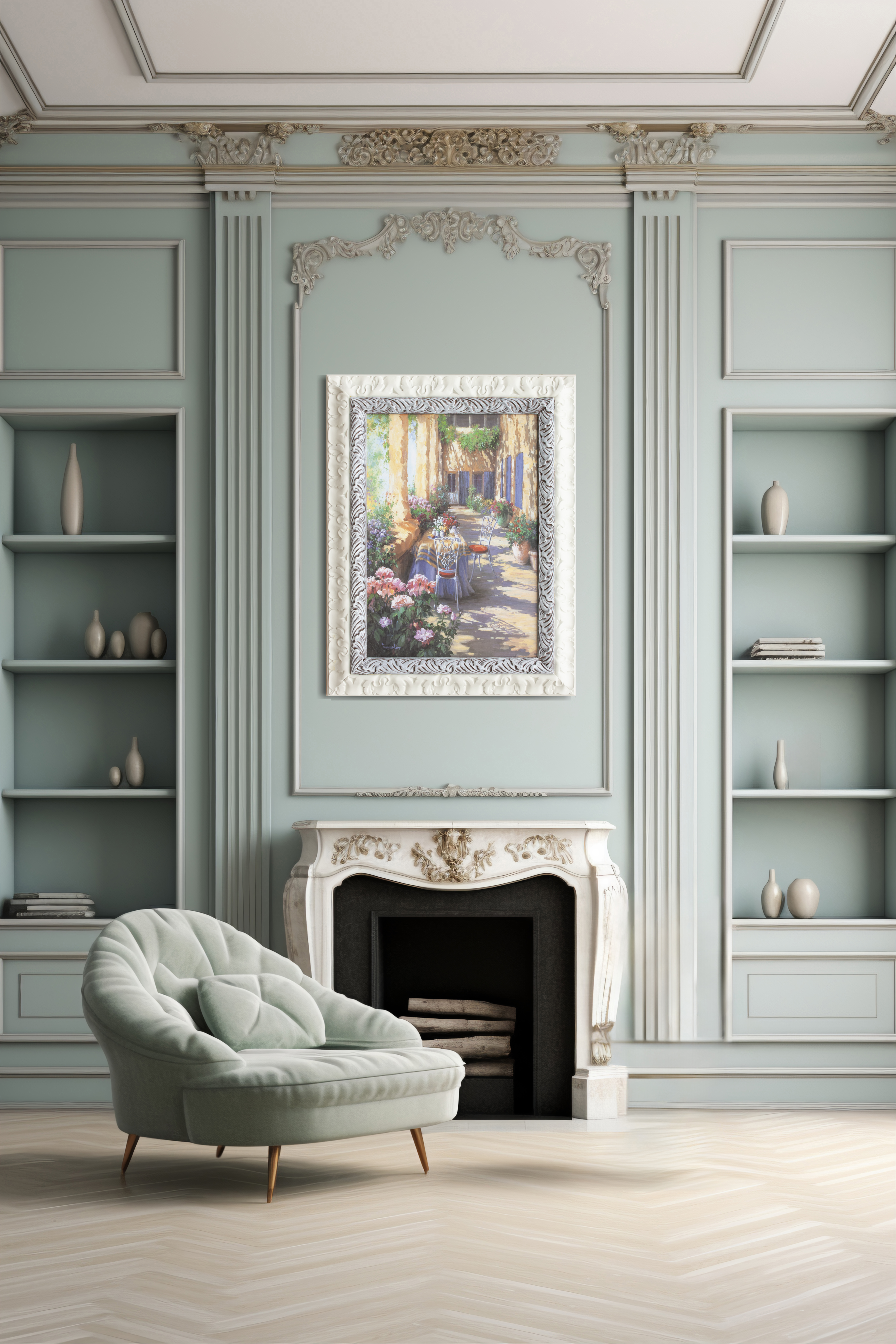 The morbid tone and chromatic harmony of the opera are perfectly integrated with the cornice, creating an effective visual effect of grand impatto and class. Ideale per ambienti ricercati, the opera conferiscce a tocco di stile e serenità a qualisiasi spazio.