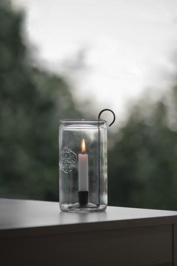 Light a candle and create a cozy atmosphere in the garden or indoors. Lykta (lantern) fits in jars and low cylindrical vases. Lykta is approximately 21 cm high.
