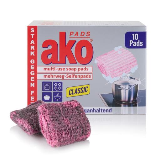 AKO Pads® effortlessly remove stubborn stains and dirt with ease. They are made from 85% recycled steel wool and are fully impregnated with soap. Ideal for cleaning pots, pans and any other surface that is made from robust materials such as metal, glass, grill racks and ceramic. Leaving sparkling results every time with no more baked on mess!