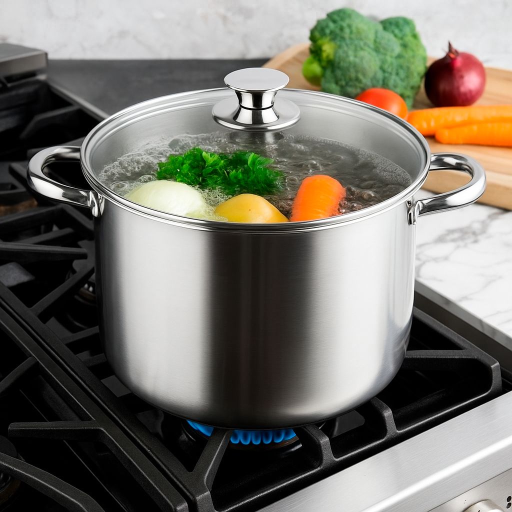The 18/10 stainless steel line offers a variety of cooking products in different sizes.