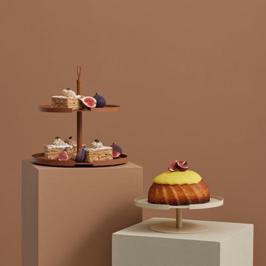 DesignBite 2-tier cake stand - clay is part of the ''BIG HUG'' collection. Functional and space saving objects for the hallway, kitchen, dining and living room. Besides, they fit in perfectly into any modern interior. The products mainly use sheet metal and wire. Often combined with wood, cork and other materials to create a design expression with the right mix of emotions.
