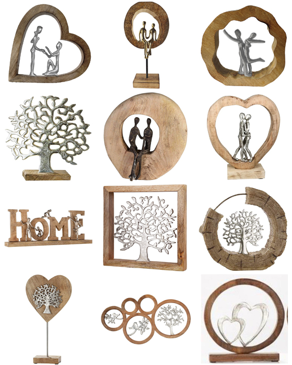 FIGURINES, SCULPTURES, TABLE AND WALL DECORATION MADE OF ALUMINIUM AND MANGO WOOD COMBINATION.
