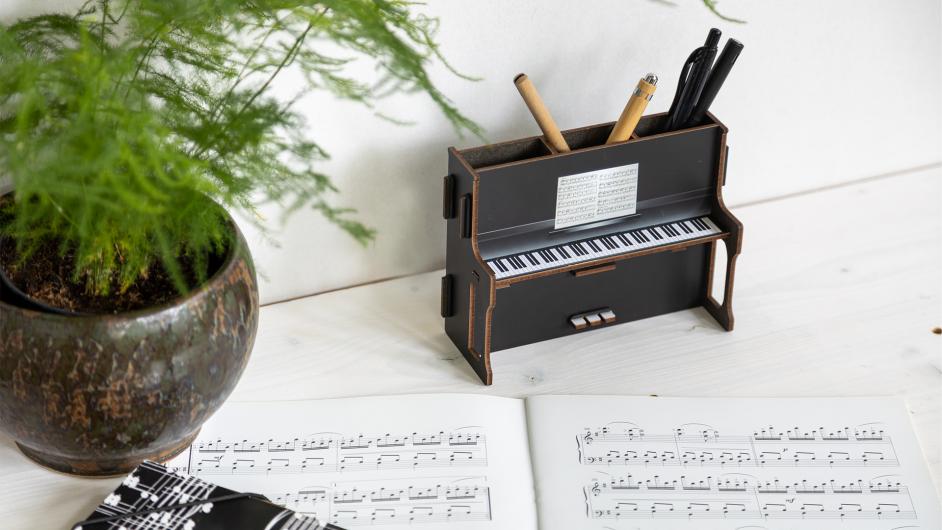 Designed with meticulous attention to detail, it resembles a real piano – complete with pedals, keys, and sheet music. This makes it not only a practical companion but also a decorative highlight for anyone with music at their heart. An ideal gift for pianists, music teachers, or students.