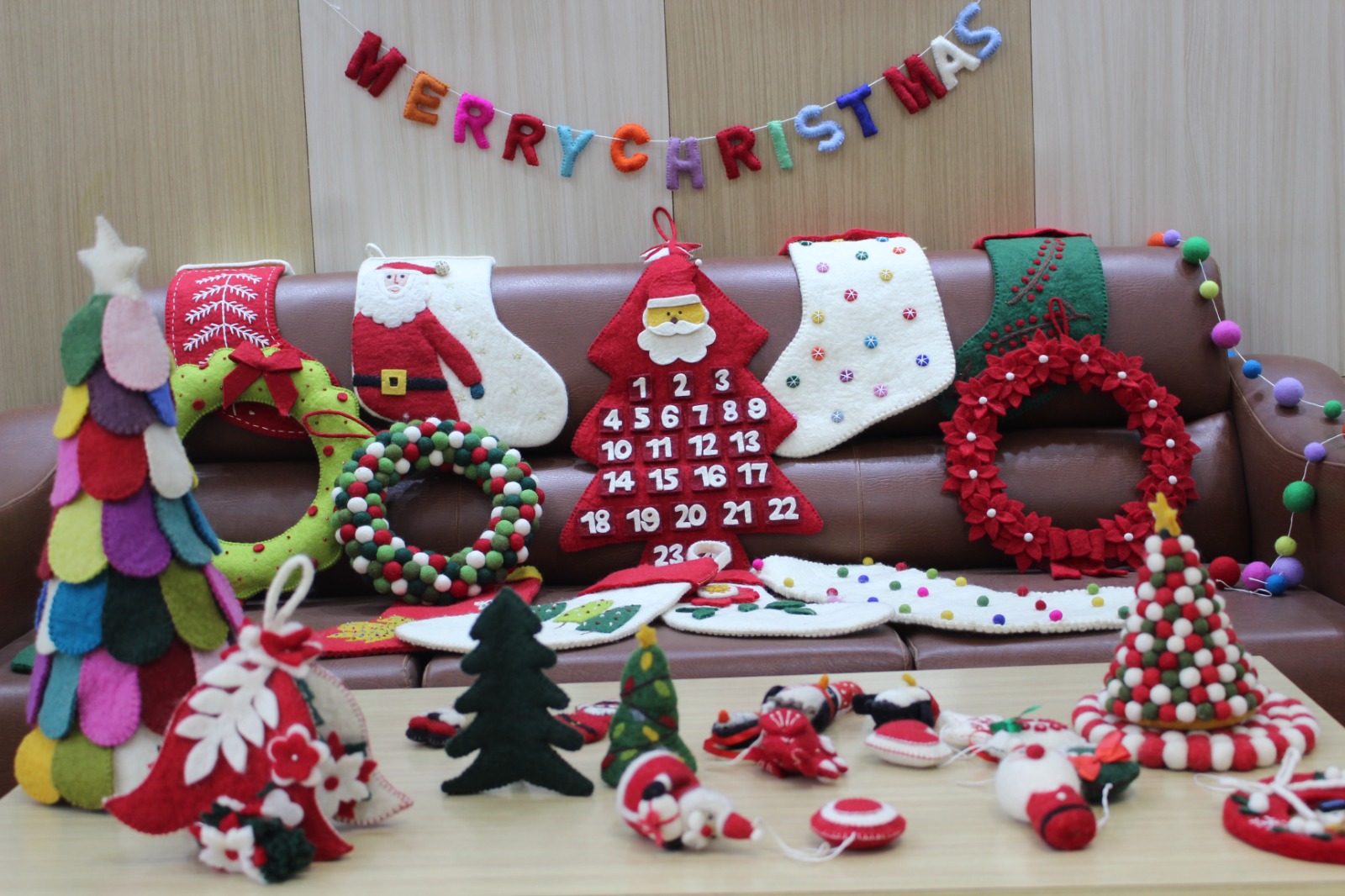 we have stockings, garlends, calender, hangings, trees All are handmade in new-zealand wool
